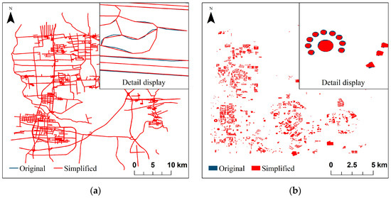 Comparison of different types of data and original data after feature simplification attack: (a) Line type vector data; (b) Polygon type vector data.