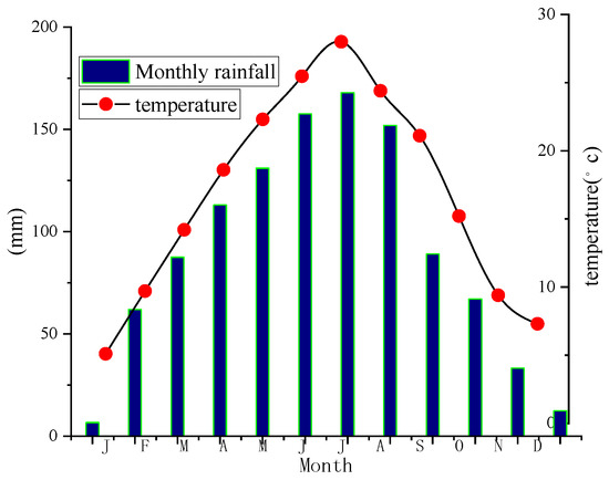 The average annual temperature is 17.3 °C and the monthly averages range from 5 (January) to 28 °C (July). The highest temperatures occur in July and August, and are characterized by abundant precipitations (Figure 2). Rainfall is not evenly distributed in all seasons, accounting for 45% of the whole year in summer, 25% in spring and autumn, and 5% in winter.