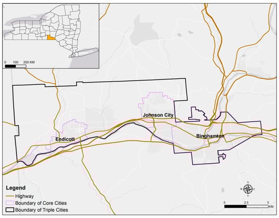 Study area of the Triple Cities (also known as the Greater Binghamton Area), New York.
