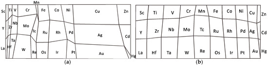 - Sheehan, W.F. Periodic table of elements with emphasis. Chemistry 1976, 49, 17–18. [Google Scholar]