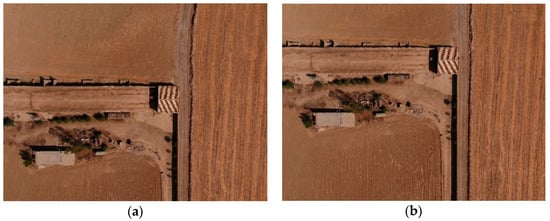 A DJI-FC6520 digital camera with the focal length of 12 mm and the image size of 5280 by 3956 pixels and GSD (Ground Sample Distance) of 0.03 m was used in this project. The overlap area between the successive images is about 80% and the imaging height above the earth surface is about 110 m. The length of the trajectory from the used images is about 2300 m. All images were geotagged using GPS positions during the flight with an accuracy of ±1.5 m. Figure 8 shows two successive stereo images of the dataset.