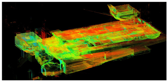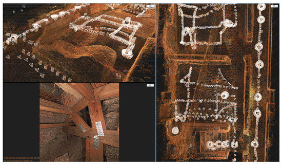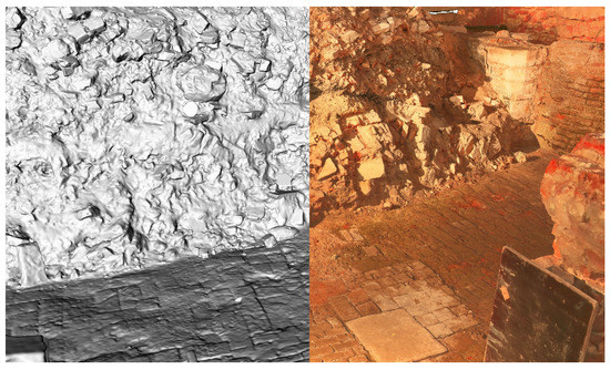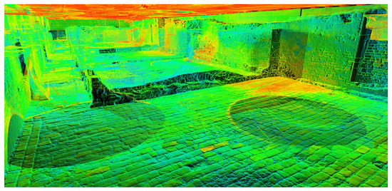 Concerning the use of the 3D point cloud, it was found that the “model” was entirely usable. However, it was requested that the colour of the point clouds was delighted to allow for virtual lightning simulations. It has enabled us to develop new acquisition guidelines that allow us to produce visually more attractive models under very-low illumination conditions, as seen in Figure 25.