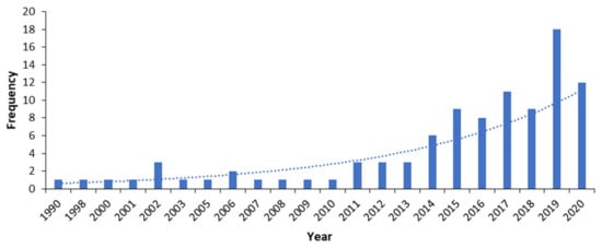 The second step aimed to carefully examine each article to remove doublets and filter articles based on relevance to the scope defined. We examined all identified articles until we reached a final set consisting of 97 articles. Figure 1 shows the temporal analysis of the identified articles over the last three decades. In general, the figure shows an increasing trend in freight data research. It can be noted that during the last decade, significant research attention has been paid to the topic compared to prior periods. Although the figure shows that some years have relatively few publications, the general trend indicates a rapidly growing interest in the research topic. This general trend confirms that analyses of freight data from private sectors are imperative for supporting reliable decision making in public sectors.