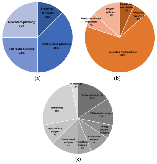 - Road infrastructure planning: this category includes studies that used the freight data to validate or investigate the impact of new roads, parking areas for trucks, and potentials for toll roads.