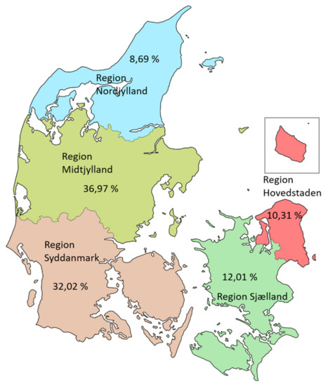 - Denmark Regions. Available online: https://commons.wikimedia.org/wiki/File:Denmark_regions.svg (accessed on 24 October 2019).