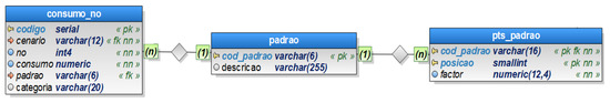In order to facilitate data manipulation for each component, the data above were uploaded onto a PostgreSQL DBMS. Using SQL statements, domains and attributes of the different entities were adapted in terms of the proposed data model, as well as the validation and solving of conflicts resulting from non-compliance with connectivity rules and topological errors. The characterization of customer consumption related to each installation was obtained from the invoicing system based on 2012–2013 average daily consumption.