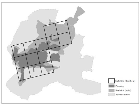 On the other hand, practitioners and institutions are often tempted to classify places as urban or rural through dichotomising the concept of urban for practical uses []. The exercise of constructing a classification is fundamental for an advanced conceptualisation of complex phenomena []. However, many reports highlight the difficulties in establishing an approach adjusted to the heterogeneity of the definition in different countries [,,,] and in the selection of determinant indicators []. Classification by administrative boundaries is widely adopted by census agencies and used for comparison purposes, but its inadequacy has been widely criticised from several perspectives for its ephemeral character (boundaries can change by decree overnight) []; for not being restricted to urban occupation (it may include vast rural areas) [,,]; and, related to this last issue, for affecting data collection [] and analysis (when assuming census tracks as the smallest homogeneous area) []. In this respect, the modifiable areal unit problem (MAUP), first studied by Gehlke and Biehl [], and later by Openshaw [], addresses the discussion of this paper concerning the translation of the urban concept applied to administrative boundaries to the reality of the territory.
