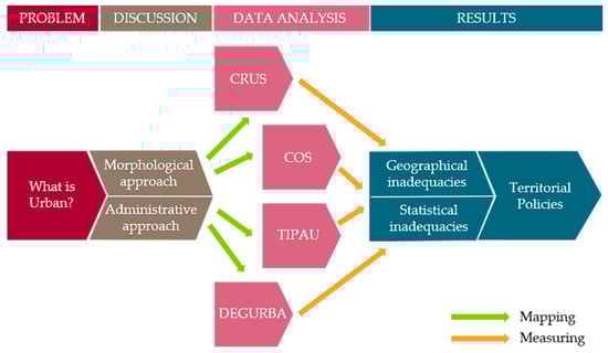Finally, a reflection was made on the consequences of using typologies of the urban in the definition of territorial policies and in their use for statistical international comparisons. Figure 2 summarises the different methodological stages of the study.
