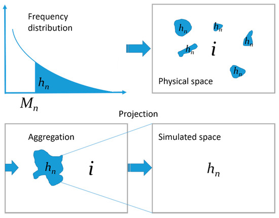 where, sn: simulated mean object size (SMOS) at n-th partition (dimensionless); i: extent of the entire study area (m2); hn: extent of the head group at n-th partition (m2); : simulated object number (SON). This transformation allows for the projection of the spatial outputs of the partitioning process (after the recursive means) to the extent of the entire study area (where segmentation is applied). In other words, the physical space has been projected to a simulated one and this kind of projection can be considered as a mapping tool, transferring scale optimality from a (global) hierarchical structure to (local) spatial patterns (Figure 1).