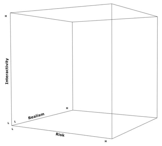 Based on the literature review, the properties defined for the CVAP framework were: risk [,,], realism [,,], and interactivity [,,,,]. These properties have been found to have effects on the overall impression or purpose of a particular geovisualization product as based on research; however, previous studies have not yet considered all three of these characteristics together in concert. The three aforementioned parameters of interactivity, realism, and risk comprise the axes of CVAP (Figure 2).