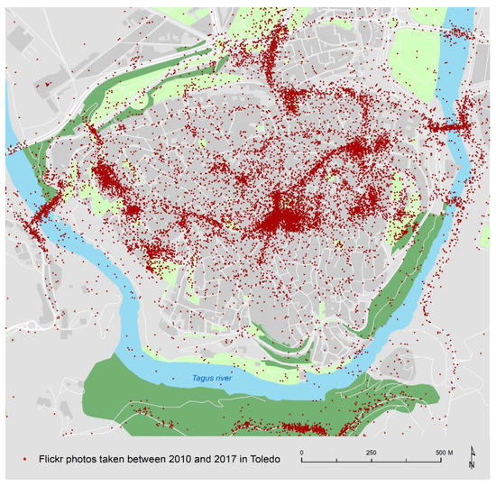 Figure 5. Flickr photos, taken between 2010 and 2017 in the historic centre of Toledo. Source: Authors’ own elaboration.