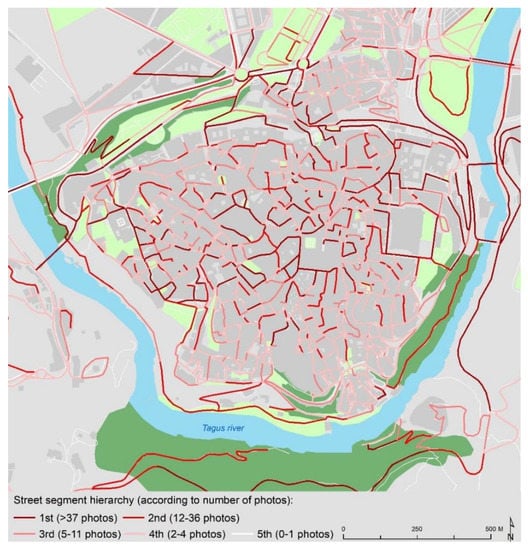 Figure 6. Street segment hierarchy according to number of photos assigned. Source: Authors’ own elaboration.