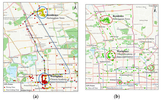 With the development of various positioning tools, individual’s mobility behavior can be continuously captured from mobile phones and GPS appliances [1,2]. These mobility data serve as an important foundation for understanding individual’s mobility behavior [3] and have gradually become fundamental data for analyzing the population, travel, and spatiotemporal characteristics of citizens [4,5]. They are extremely important for the examination of urban spatial structures and the behavior of residents from an individual microscopic perspective [6,7,8].