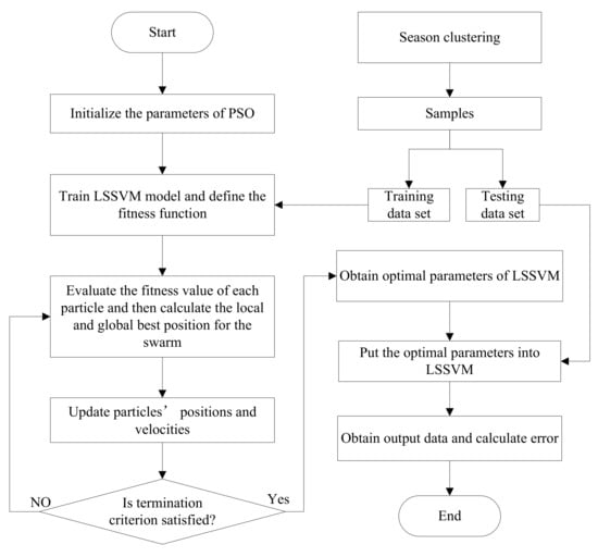 Flow chart of the procedure of the particle swarm optimization-least squares support vector machine (PSO-LSSVM).