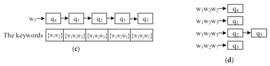 Organizing the keywords of CkQST. When new objects arrive, the cost of verifying these objects with queries in spatial nodes is expensive. How to reduce the verification cost is the key to improve the filtering ability of the index. We discuss three aspects of constructing an inverted index. (1) For an inverted index, queries in posting lists are usually unordered. For the five queries in
