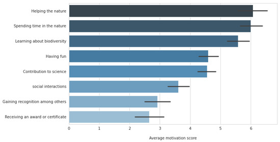Unlike the first two, the third classic CS use case is not about capturing biodiversity; rather, its objective is about monitoring water quality [75]. The top three forms of motivation among participants contributing to several water quality monitoring projects are helping the environment, helping a community, and being connected with nature [75]. Moreover, like other projects, building social networks and being known among a community are given little importance; however, working with like-minded people was an important motivation. They also compared motivation types among various age groups; some variations among younger and older participants were observed for social and career motivation. Even though career-based motivation and recognition among others were given low scores for all age groups combined, they were reported as stronger reasons to participate among younger participants.