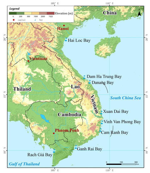 Location of bays along the coast of Vietnam.