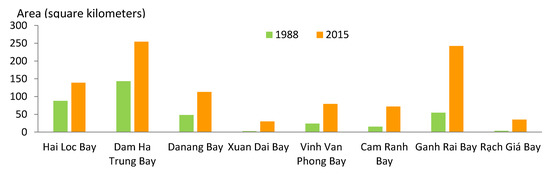 Areas of construction land in bays in 1988 and 2015.