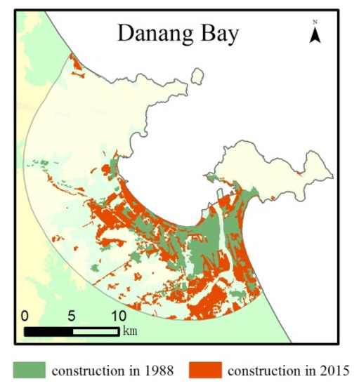 Spatial distribution of construction land in Danang Bay.