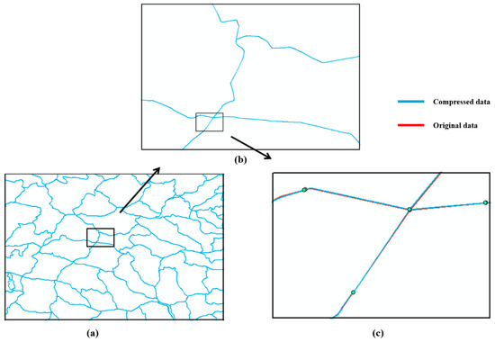 Spatial data acquisition efficiency and accuracy have been drastically improved due to fast development of positioning technologies including global navigation satellite systems (GNSS), Bluetooth, Wi-Fi and others equipped on portable mobile devices [1,2]. Volume of big geospatial data in vector model such as trajectory of moving agents and geotagged social media posts grows exponentially and brings more challenges to efficient spatial data management, network transmission and visualization [3,4,5]. Compression of vector spatial data can relieve the pressure of these application scenarios.