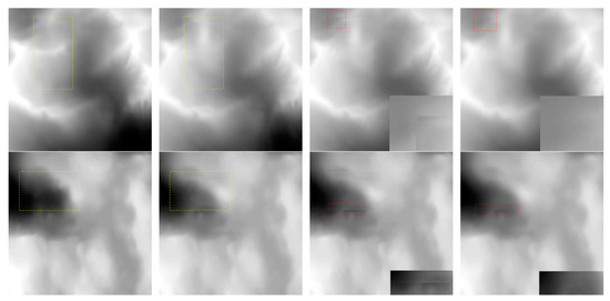 In this paper, a local bilateral filtering algorithm was adopted to post-process the restored DEM results so as to eliminate the leaping errors generated at the boundary. The eliminated results are shown in Figure 10d.