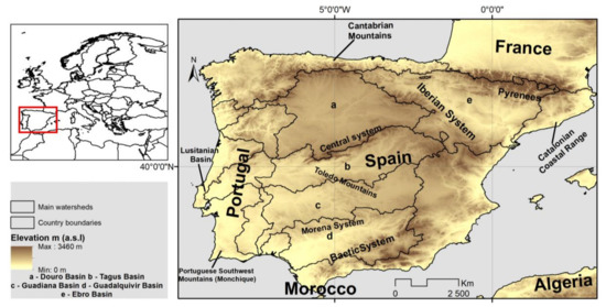 - Loidi, J. Introduction to the Iberian Peninsula, General Features: Geography, Geology, Name, Brief History, Land Use and Conservation. In The Vegetation of the Iberian Peninsula; Loidi, J., Ed.; Springer: Berlin/Heidelberg, Germany, 2017; pp. 3–27. [Google Scholar]