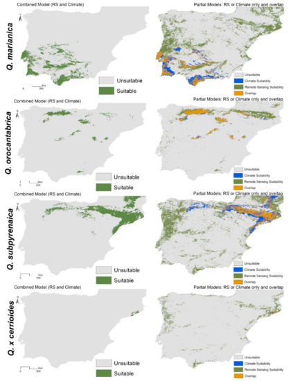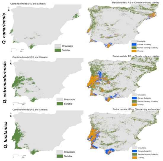 Vila-Viçosa, C.; Arenas-Castro, S.; Marcos, B.; Honrado, J.; García, C.; Vázquez, F.M.; Almeida, R.; Gonçalves, J. Combining Satellite Remote Sensing and Climate Data in Species Distribution Models to Improve the Conservation of Iberian White Oaks (Quercus L.). ISPRS Int. J. Geo-Inf. 2020, 9, 735. https://doi.org/10.3390/ijgi9120735