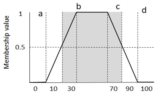 Results generated in a fuzzy form cannot be applied in an environment where a decision must be taken on crisp values. Several defuzzification methods are known, including lambda-cut, weighted average, maxima, and centroid methods [48,54,55]. This study applies the lambda-cut defuzzification method for given threshold values. Precise thresholds should be determined by the user’s requirements concerning output reliability after defuzzification.