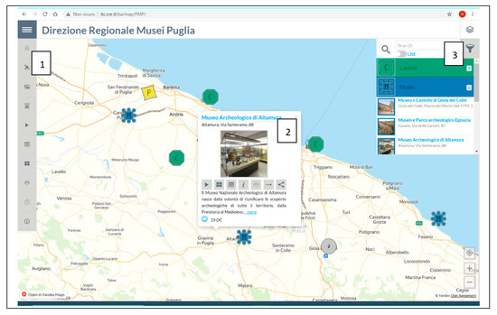 - Direzione Regionale Musei Puglia—Interactive Map. Available online: http://www.itc.cnr.it/ba/map/PMP/ (accessed on 25 September 2020).