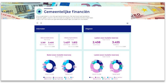 This dashboard, which primarily makes use of data within the Netherlands from various organisations, including the Dutch Bureau of Statistics (CBS) and the Dutch Land Registry (Kadaster), presents data for each “gemeente” (municipality) in the country based on thematic visualisations of various data attributes. The visualisation features include tabular, chart, numerical and geographic visualisations and are available for download in PDF, CSV and Excel format. Within each thematic page, there are several data tiles illustrating the aggregated data relating to a specific data point for all municipalities. Clicking on one of these tiles allows the user the access the database behind each tile from a specific data provider, and the database is presented in the user interface as an interactive dashboard.