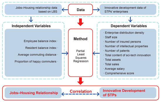 The correlation between the jobs–housing relationship and the innovative development of STPs was analyzed using the partial least squares regression (PLSR) method. A flowchart of the methods is shown in