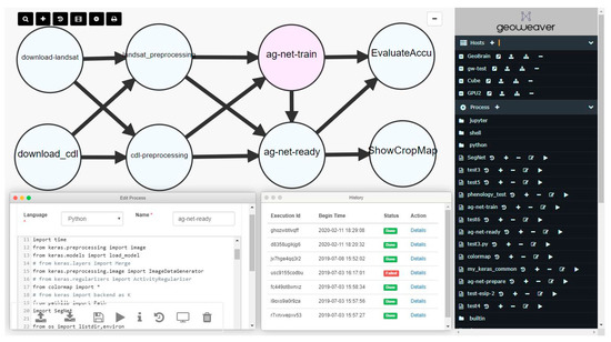 - Sun, Z.; Di, L. Geoweaver: A Web-Based Prototype System for Managing Compound Geospatial Workflows of Large-Scale Distributed Deep Networks. 2019. [Google Scholar] [CrossRef]