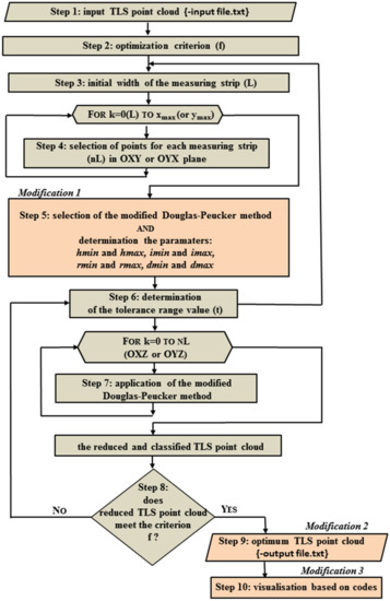 - The optimum TLS point cloud is saved in an output file in .txt format (step 9). Then the user can use the reduced and classified dataset for visualization (step 10).