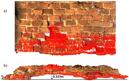 In this study, the generalization was performed in the OXZ plane; therefore, the changes in height were preserved. Due to the fact that the input data were provided by laser scanning technology, in addition to x, y, and z, the intensity of the laser signal was also recorded. Changes in intensity are related to, among other factors, moisture and bio-deterioration. Thus, the analysis was extended with qualitative tests of the wall surface.