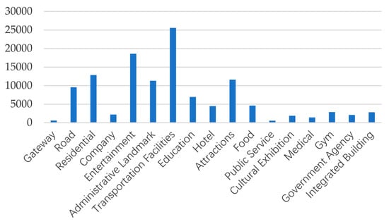 17]. It can be demonstrated that the POI-based approach can better measure the land use mix than the traditionally parcel-based approach. Furthermore, previous studies have proposed social sensing approaches instead of remote sensing approaches to classify functional areas or land use parcels according to human mobility and activity patterns [
