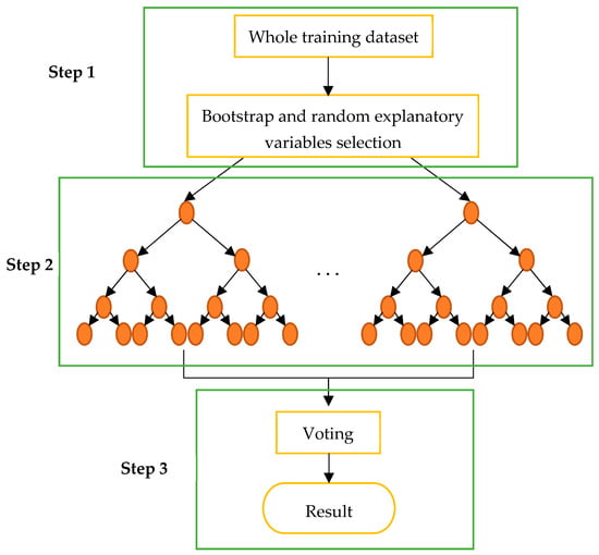 21], the max number of decision trees and splitting variables were selected as main parameters to explore the optimal RF model in this study. We firstly separated the dataset into training and predicted samples for training and testing prediction accuracy, respectively. Secondly, we constructed a model under the number of decision trees during the range from one to 1000 in increments of five. Generally, a bigger quantity of decision trees causes higher prediction accuracy, while the limitation of that is the time consumed. Therefore, we wanted to make a balance between time consumed and prediction accuracy. As the exhibition of