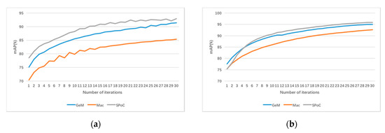 The pooling methods. Evaluation is performed with VGG16 (a) and ResNet50 (b) on PatternNet datasets. The curve represents the evolution of mAP in the training iteration.