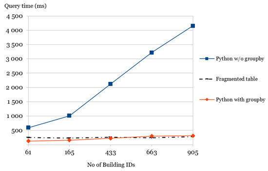 We note that for the SMALL dataset, there would be additional sub-directories under the directory ‘ID_5’, with each sub-directory corresponding to a separate building ID as explained in Section 3.7. In order to test how the query times would be affected by increasing the number of sub-directories under the directory ‘ID_5’, we used the extended SMALL dataset. This test, along with the extended SMALL dataset, is described separately in Section 4.1.1.