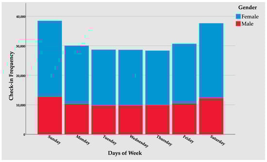 The temporal check-in analysis further consists of three parts: daily patterns, weekly patterns, and check-in patterns for 180 days, from 1st January to 30th June 2017 (the study period of our research). All of these results also highlight the frequency of both male and female users.