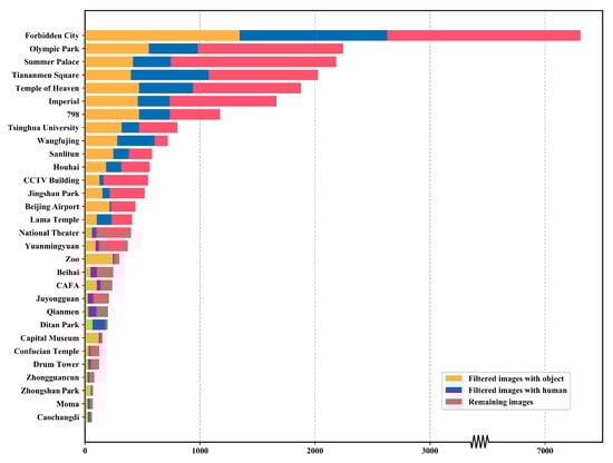 The number of filtered images and the remaining images of each tourist attraction.