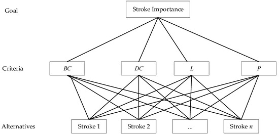 13]. While a road’s frequency of usage, type, width, length, and degree centrality also play a vital role in generalization at medium scales, these indicators contain local information about roads and reflect the relations between roads and their neighboring facilities. Hence, these methods lead to the weights of indicators being inconsistent with cartographic experience. In this regard, the analytic hierarchy process (AHP) [