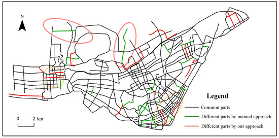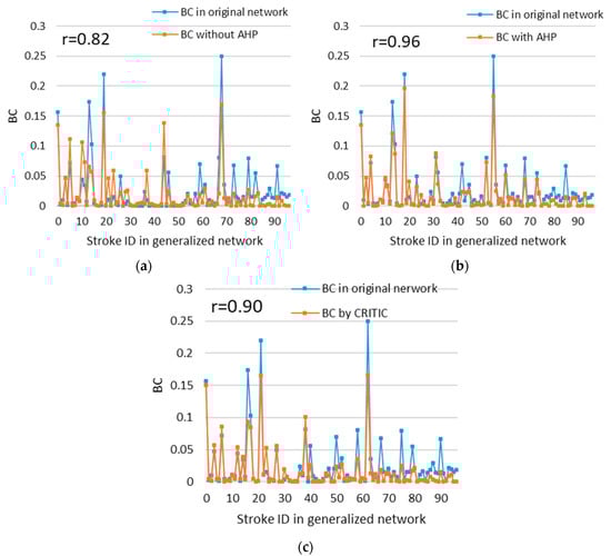 22], were introduced to regulate the influence of different indicators on road selection. These methods have a strong mathematical basis, and are able to avoid different selection results caused by differences in cartographic experience. However, the determined weights often fail to reflect the actual importance of the indicators in the road selection environment. For instance, betweenness centrality should be given a higher weight in small-scale generalization due to its ability to identify the main hubs in a network [