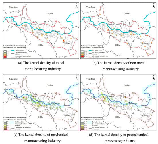 5.3.1. The Kernel Density Analysis of Industrial Elements