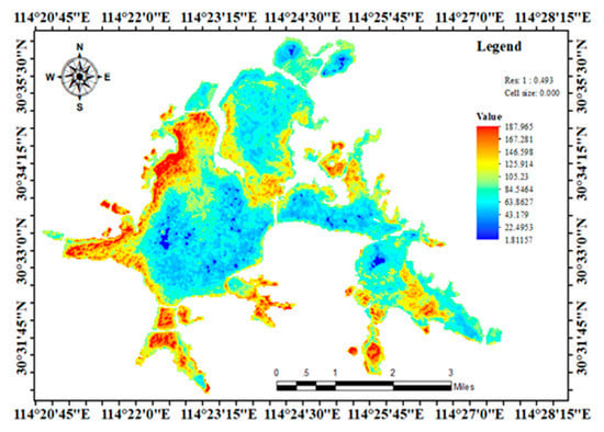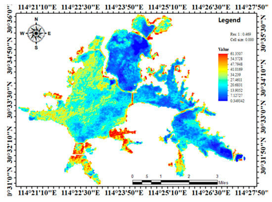 In conclusion, the two methods are now optimized for lake water quality studies and complement each other. The mature numerical model of the hydrological environment is combined with the still-developing remote sensing inversion technology. It can not only follow evolution mechanisms, but can also improve the numerical simulations, finally producing accurate water quality results. This is now the first choice for lake eutrophication management in a new environment []. At present, there are only a few applications in water quality monitoring and pollution control of shallow lakes in China, which has important exploration and research significance.