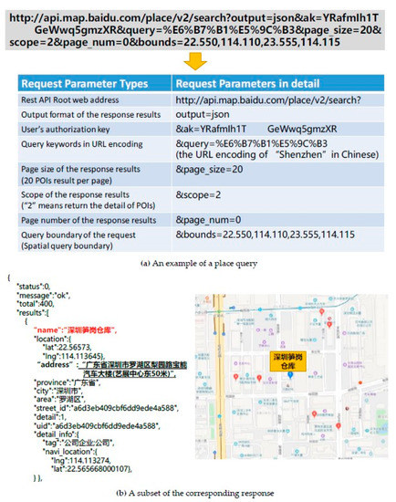 There are several advantages in using urban POI data with textual addresses as input data. First, the textual place detail information provided by urban POI data (including names, addresses, and other rich details) and the geospatial position coordinates gave a one-to-one correspondence, which meets our requirements for input data. Second, this type of data is available online and easily acquired. Many online digital map platforms such as Google Maps (https://www.google.com/maps/), Bing Maps (https://www.bing.com/maps), and Baidu Maps (https://map.baidu.com/ provide API services that support POI location data queries. Thus, our proposed framework can collect these data online (for example, by crawling urban POI data from digital map platforms) and apply our algorithms to the collected data. Moreover, the POI data provided by these platforms are constantly updated, so they can be used effectively to obtain updated address information over time.