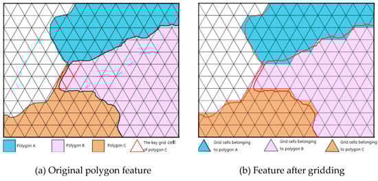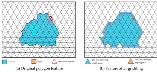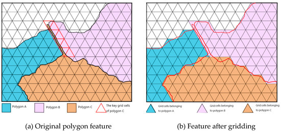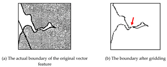 Because of the difference of the data model itself, the gridding of vector features is inherently a lossy process, which leads to distortion of geometric properties and topological relations [10]. In the literature, scholars usually focus on the preservation of geometric properties such as angle, length, and area in vector feature integration [11] but ignore the preservation of topological relations.