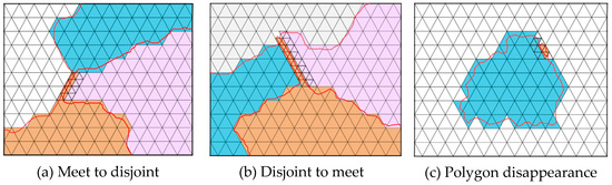 The gridding of a single polygon feature may occur when the polygon feature disappears or is divided into multiple polygon features [17]. Detailed descriptions are provided as follows: