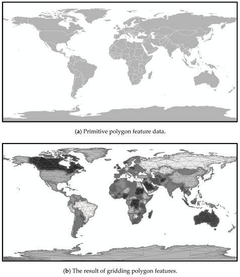 A discrete global grid system (DGG) divides the earth’s surface into seamless and nonoverlapping multi-level regional unit sets, which are used to fit the earth’s surface [1,2,3] at different resolutions and can standardize the integration and analysis of massive spatial data [4] at any resolution. A DGGs can be thought of as a framework of Digital Earth [5] for the integration of spatial data [6,7] and earth system modeling [8]. In order to realize the grid representation of geographical objects, integration of vector features, that is, the discretization of vector features into grid cells of corresponding scales according to certain criteria, must be performed and is the core problem of discrete global grid systems research [9].