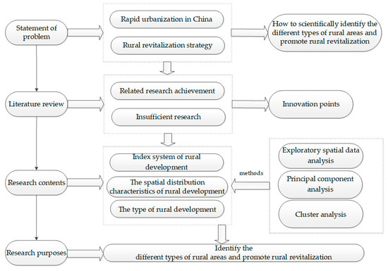 This study discusses the significance of studying rural development and explains the target of our research, then constructs an index system for evaluating the level of rural development, attempts to analyze the spatial pattern of the rural development level, and identifies the types of rural development (Figure 3).