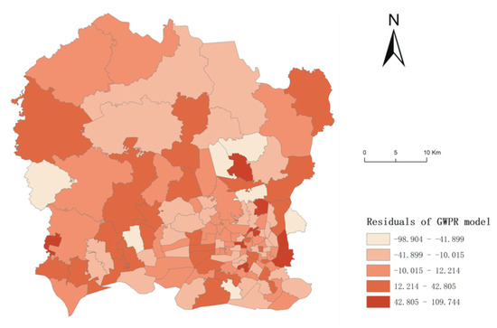 The spatial agglomeration of crime has been widely documented in literature [20,21]. The underlying assumptions of the above models are that the error term is spatially independent. If the residual was spatial correlated, the model results would be biased [36]. The Moran’s I indices for model residuals were calculated to analyze the spatial autocorrelation and the results were presented in Table 3. It could be noted that the spatial correlation in the residuals of GLM was significant at 90% confidence level, whereas the residuals of GWPR do not appear to correlate spatially. This indicates that the spatial dependency of drug dealings has been fully addressed by the model.